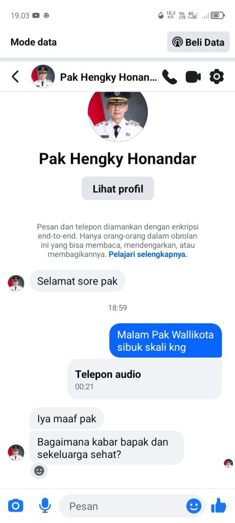Akun dengan nama “Pak Hengky Honandar” tersebut dilaporkan telah menghubungi sejumlah warga melalui pesan pribadi. Modus yang digunakan berupa permintaan tertentu hingga iming-iming janji kepada pengguna Facebook, dengan foto profil menggunakan pakaian resmi.