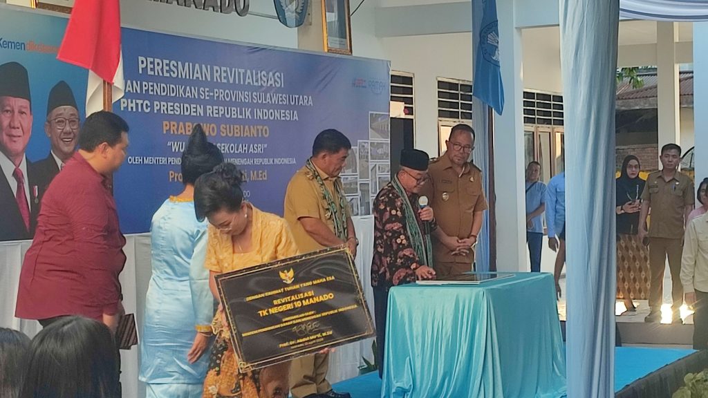 Manado, tubersmedia.com – Menteri Pendidikan Dasar dan Menengah Republik Indonesia, Abdul Mu’ti, meresmikan program revitalisasi satuan pendidikan se-Sulawesi Utara melalui Program Hasil Terbaik Cepat (PHTC) Presiden Prabowo Subianto bertajuk “Wujudkan Sekolah Asri”. Peresmian berlangsung di TK Negeri 10 Manado, Senin (21/4/2026).